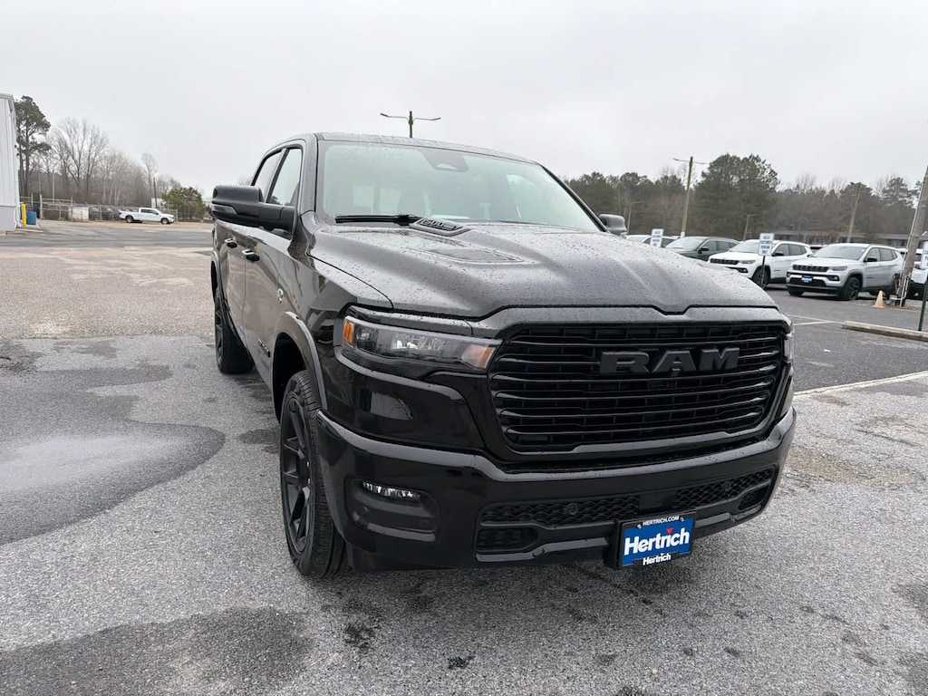 NIGHT EDITION Black Headlamp Bezels, Wheels: 22 x 9 Forged Aluminum, Tires: 285/45R22XL BSW All Season, Pirelli Brand Tires, Proximity Approach/Departure Lamps, Anti-Spin Differential Rear Axle, Accent Color Door Handles, Black Interior Accents, Body Color Front Bumper, Grille Surround 3 Black Texture 2 Black, Body Color Rear Bumper w/Step Pads, RAM Grille Badge - Black, Black Painted Exterior Mirrors Caps, Exterior Mirrors Approach Lamps, Accent Color Premium Power Mirrors, Sport Performance Hood, Black Exterior Truck Badging, Accent Color Tailgate Handle, Dual Exhaust w/Black Tips, Black Tail Lamp Bezels, LARAMIE LEVEL 2 EQUIPMENT GROUP Rain Sensitive Windshield Wipers, 14.4 Touchscreen Display, Front Passenger Interactive Display, Radio: Uconnect 5 Nav w/14.4 Display, harman/kardon® 19 Speaker Premium Sound, Cluster 12 TFT Color Display, Power Tailgate, DUAL-PANE PANORAMIC SUNROOF LED Dome/Reading Lamp, Dome Dual LED Reading Lamp, ENGINE: 5.7L V8 HEMI MDS VVT ETORQUE 48V Belt Starter Generator, Heavy Duty Engine Cooling, Passive Tuned Mass Damper, Delete Alternator, Passive Cold End Exhaust, 18 Aluminum Spare Wheel, BED UTILITY GROUP MOPAR Spray In Bedliner, MOPAR 4 Adjustable Cargo Tie-Down Hooks, Exterior 115V AC Outlet, TRANSMISSION: 8-SPEED AUTOMATIC (8HP75) (STD).